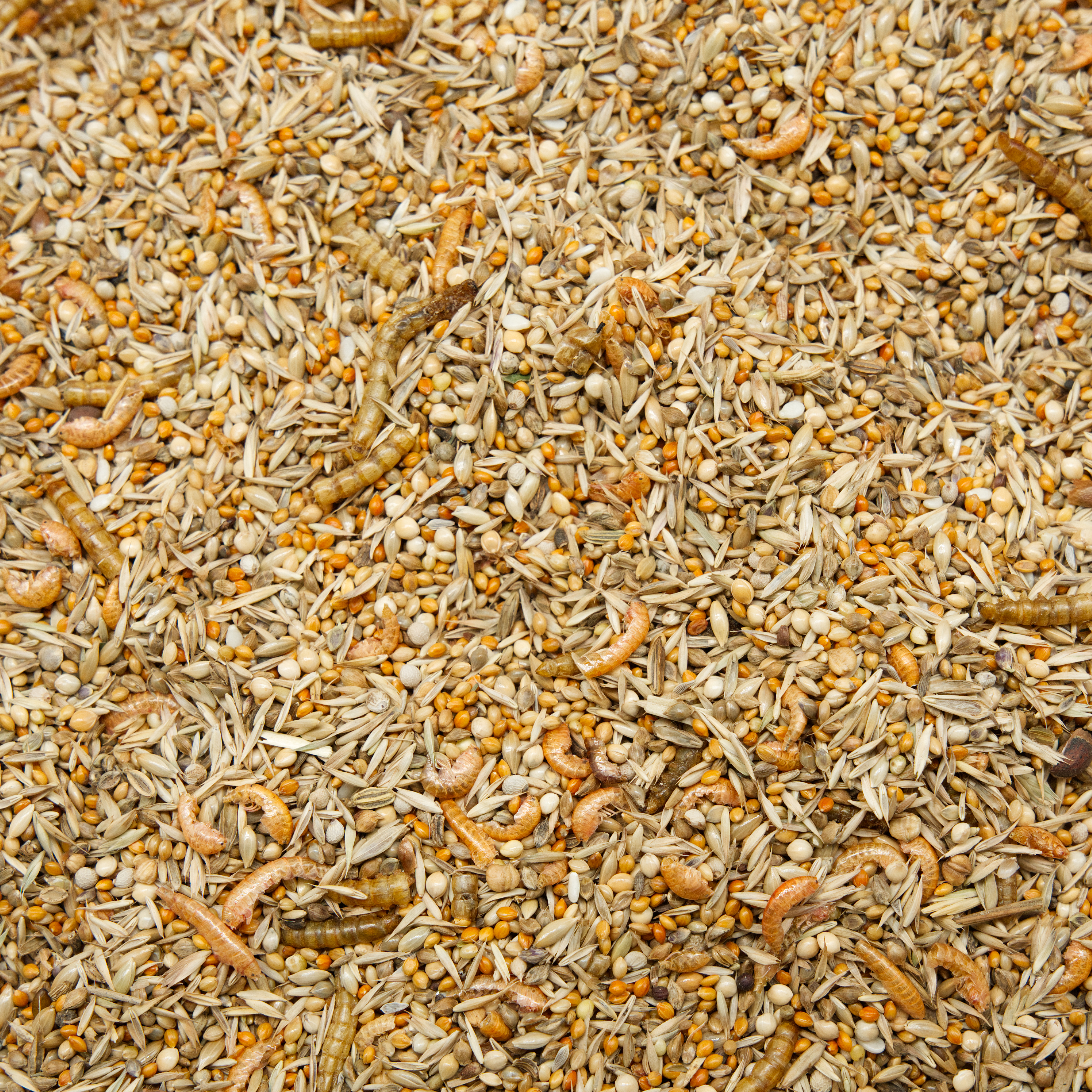 Senegalhirse, Mannahirse, Mohairhirse, Japanhirse, La-Plata Hirse, Silberhirse, Kanariensaat, über 30 verschiedene Wildsamen, Knaulgras, Mehlwürmer