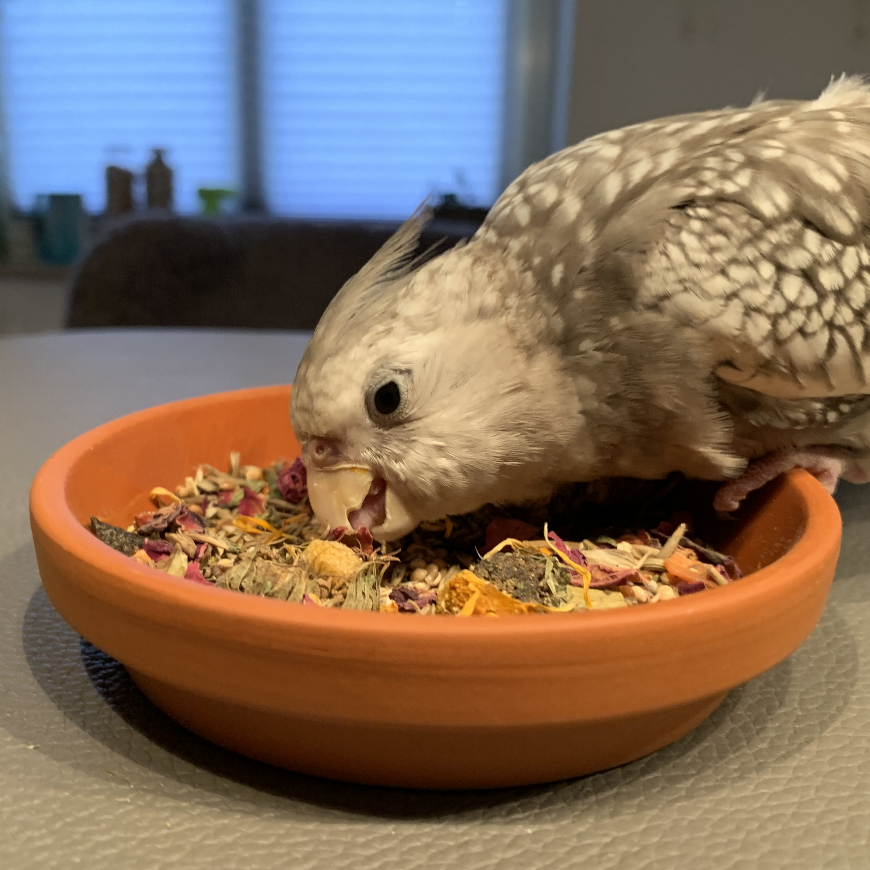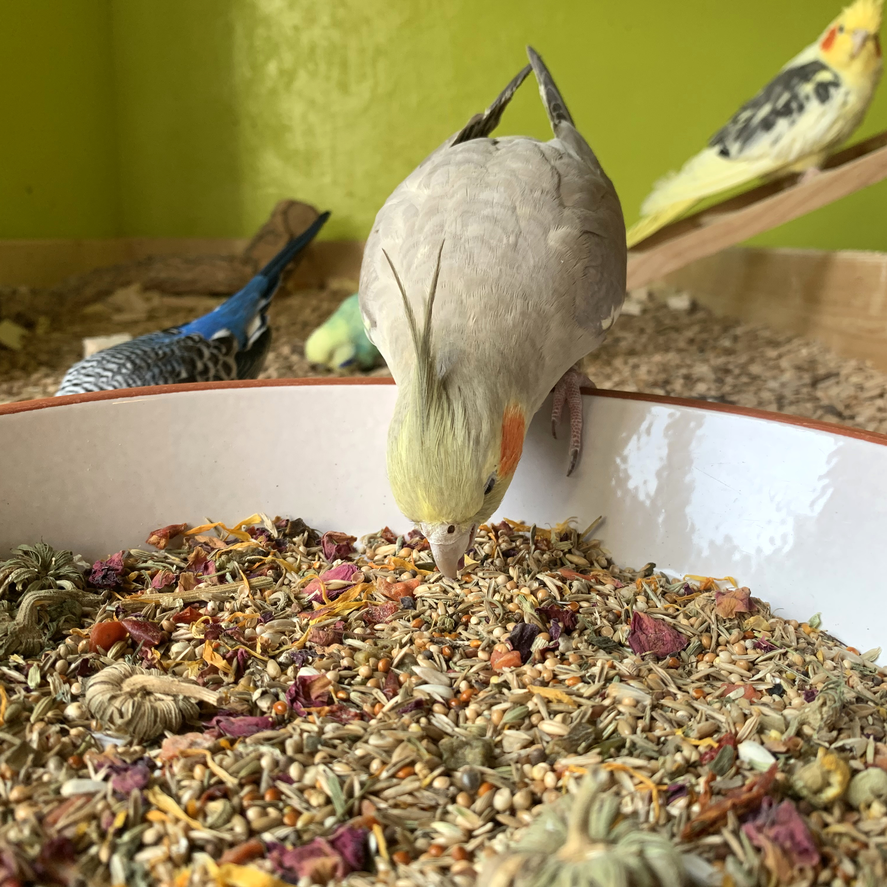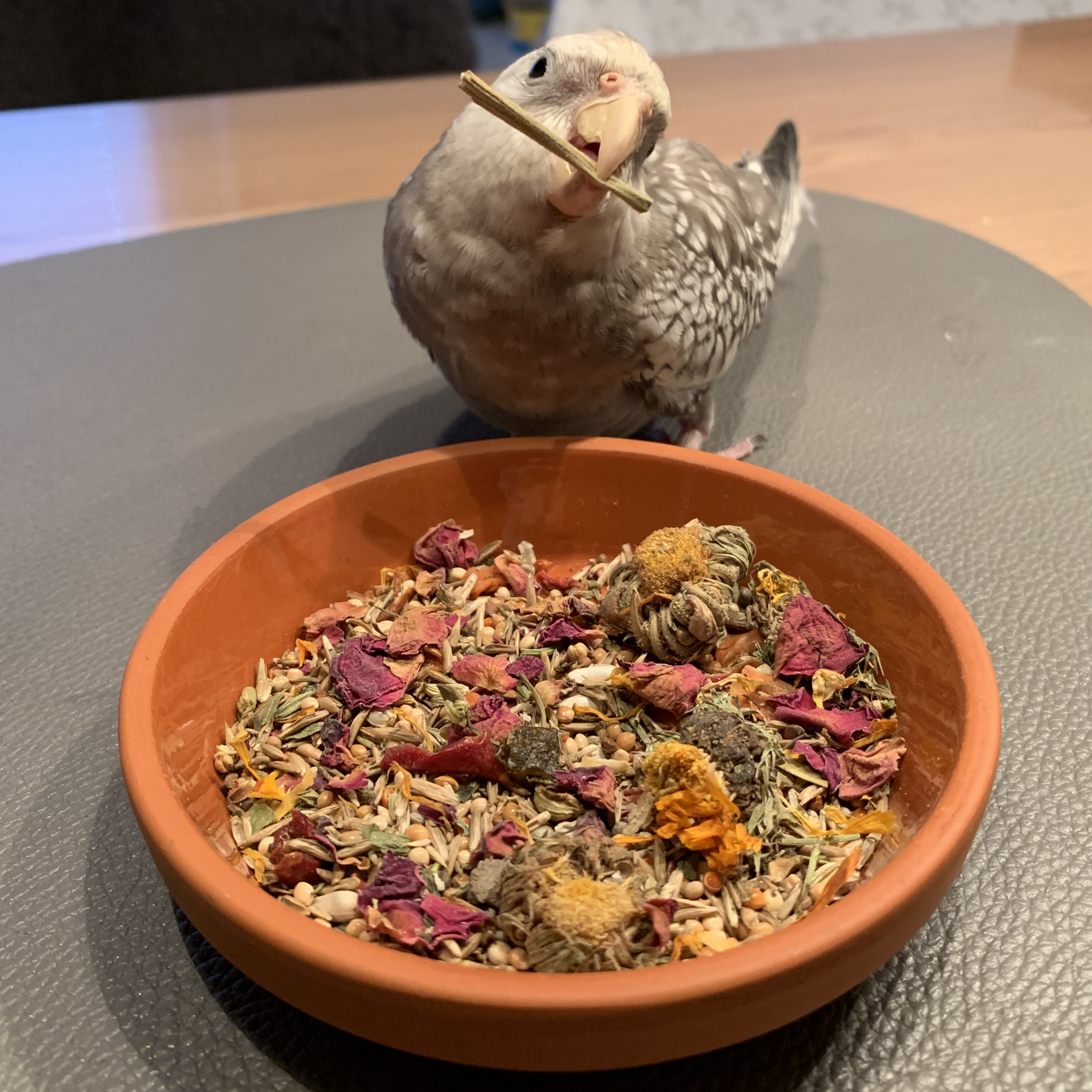 Es dauerte ein wenig, bis meine Katharinasittiche es angenommen haben, aber mittlerweile wird es gerne gefressen. Es duftet stark aromatisch, vielleicht mussten sie sich daran erst gewöhnen. Mir als Halterin gefällt besonders der Zusatz von Blüten, die Katharinasittiche in der Natur häufig fressen, insgesamt eine gelungene Zusammenstellung.