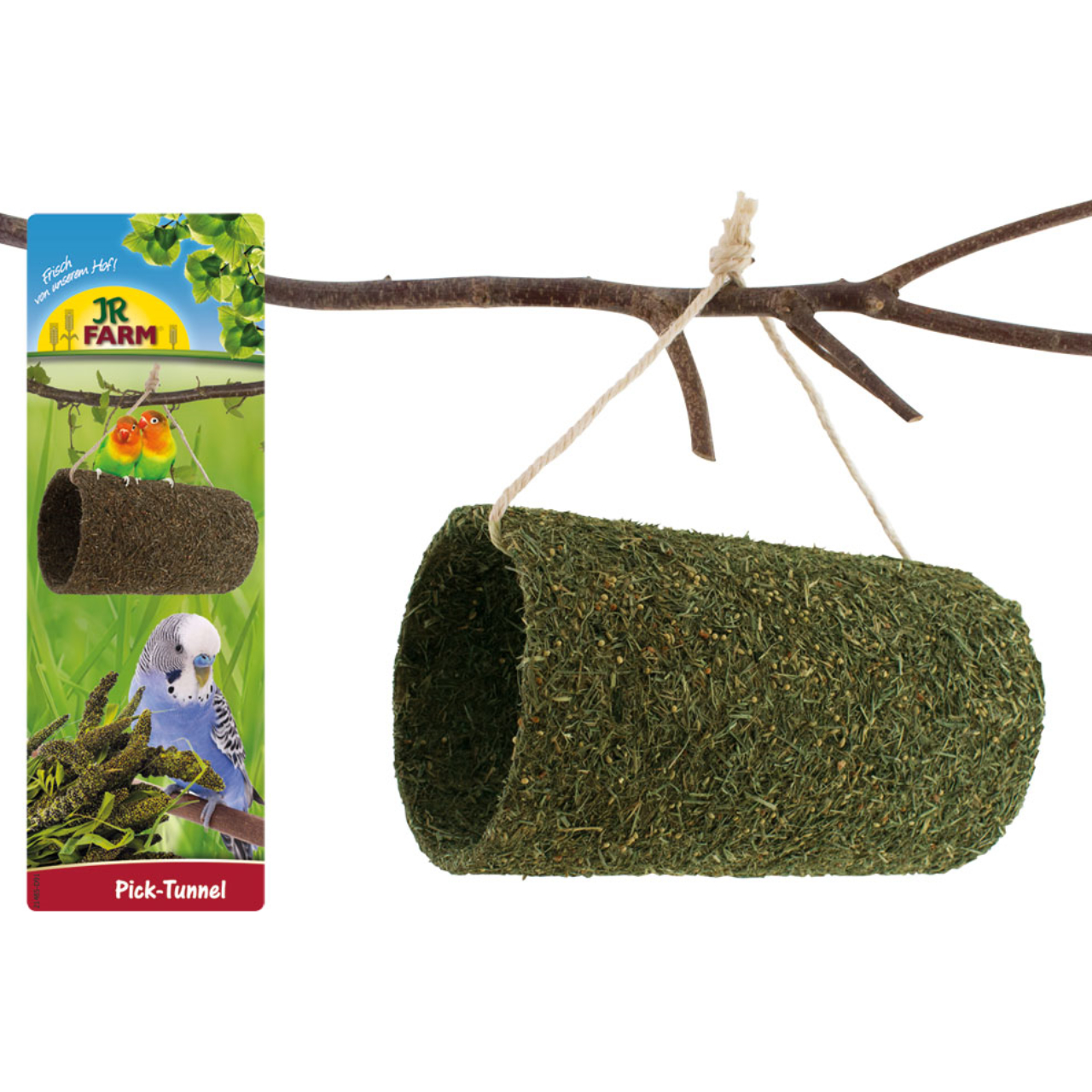 Dieser Tunnel aus 100% Naturmaterial ist umhüllt mit duftenden Kräutern und verschiedenen Hirsekörnern. Aufgehängt bietet er den Vögeln Beschäftigung und Pickvergnügen in Einem.
