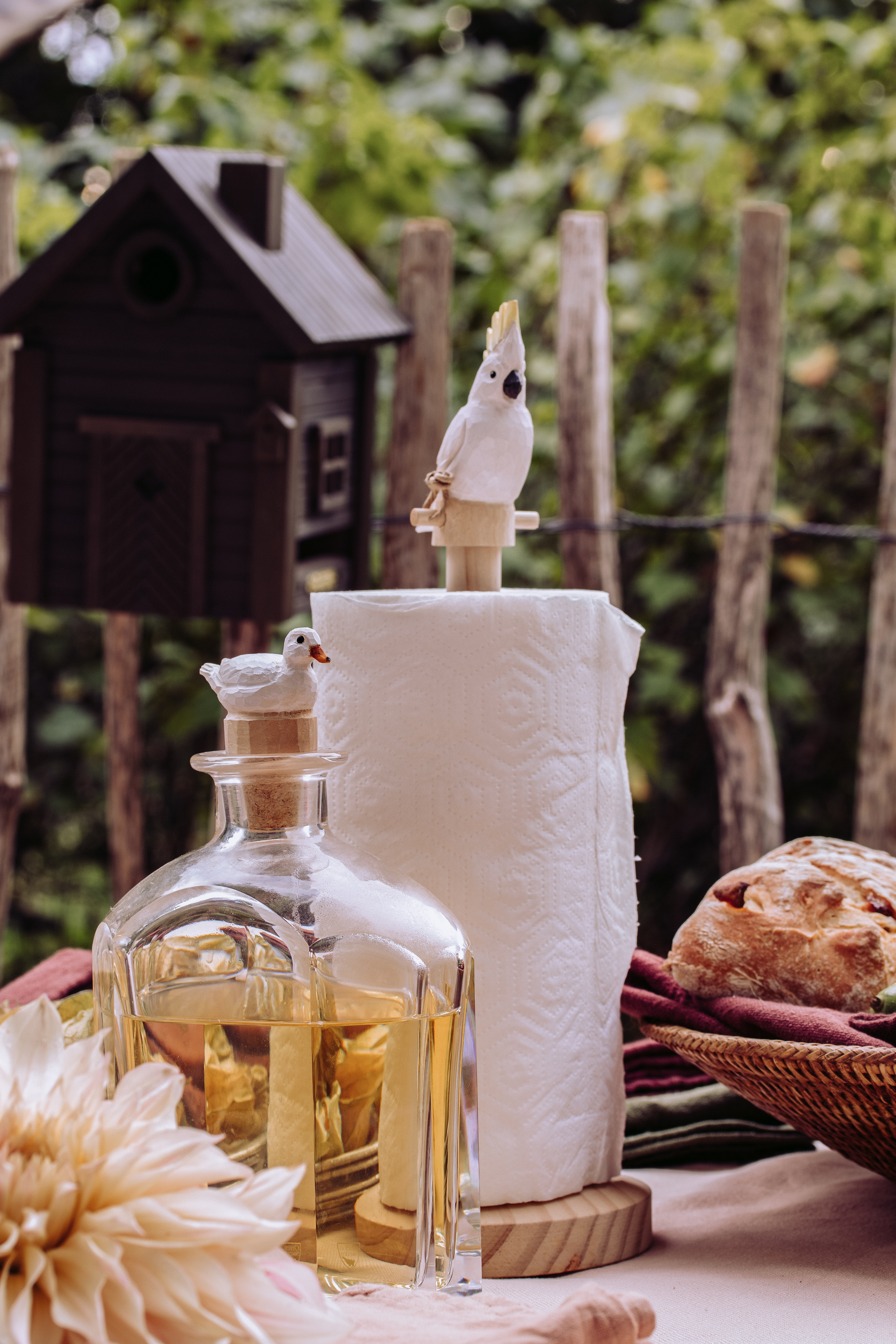 Auf diesem bezaubernden Küchenrollenhalter sitzt ein handgefertigter Kakadu. Der Kakadu, ein beliebter australischer Vogel, ist aus Holz geschnitzt und von Hand mit umweltfreundlicher Farbe bemalt. Mit seinem verspielten Design wird dieser Küchenrollenhalter zu einem Alltagsfavorit, der auf der Küchentheke einen Ehrenplatz einnimmt.
